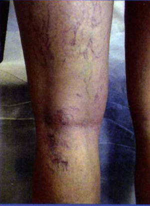 red or blue and are closer to the surface of the skin than varicose veins. Spider